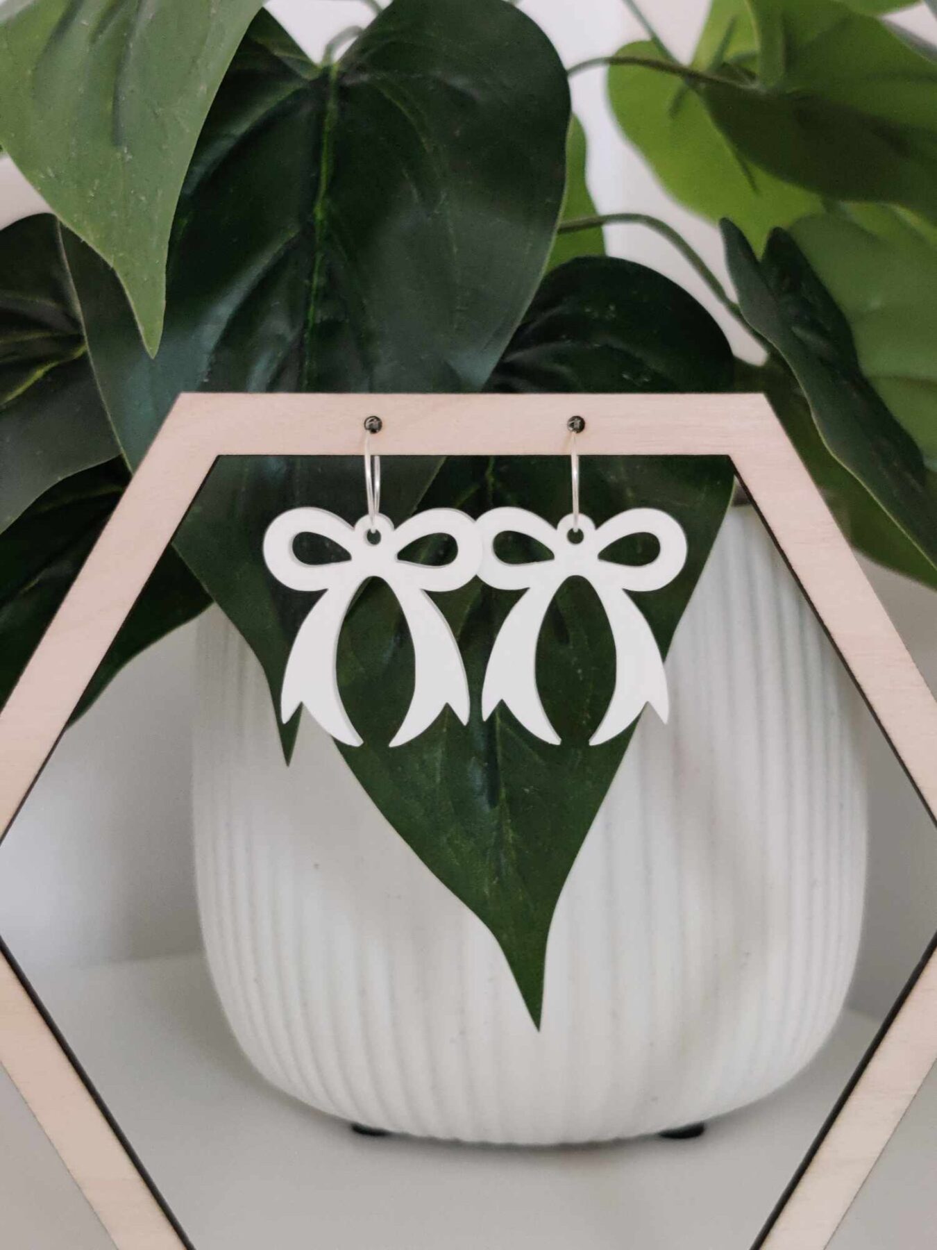 Disse unikke øreringe er lavet i hvid akryl, og passer derfor til alle typer af outfit og kan bruges til hverdag, såvel som til festlige lejligheder.