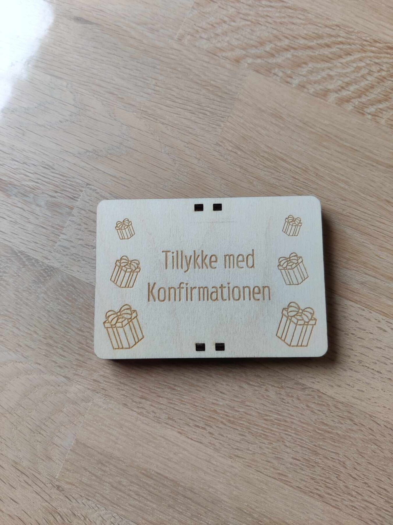 • Graveret tekst: Tillykke med Konfirmationen