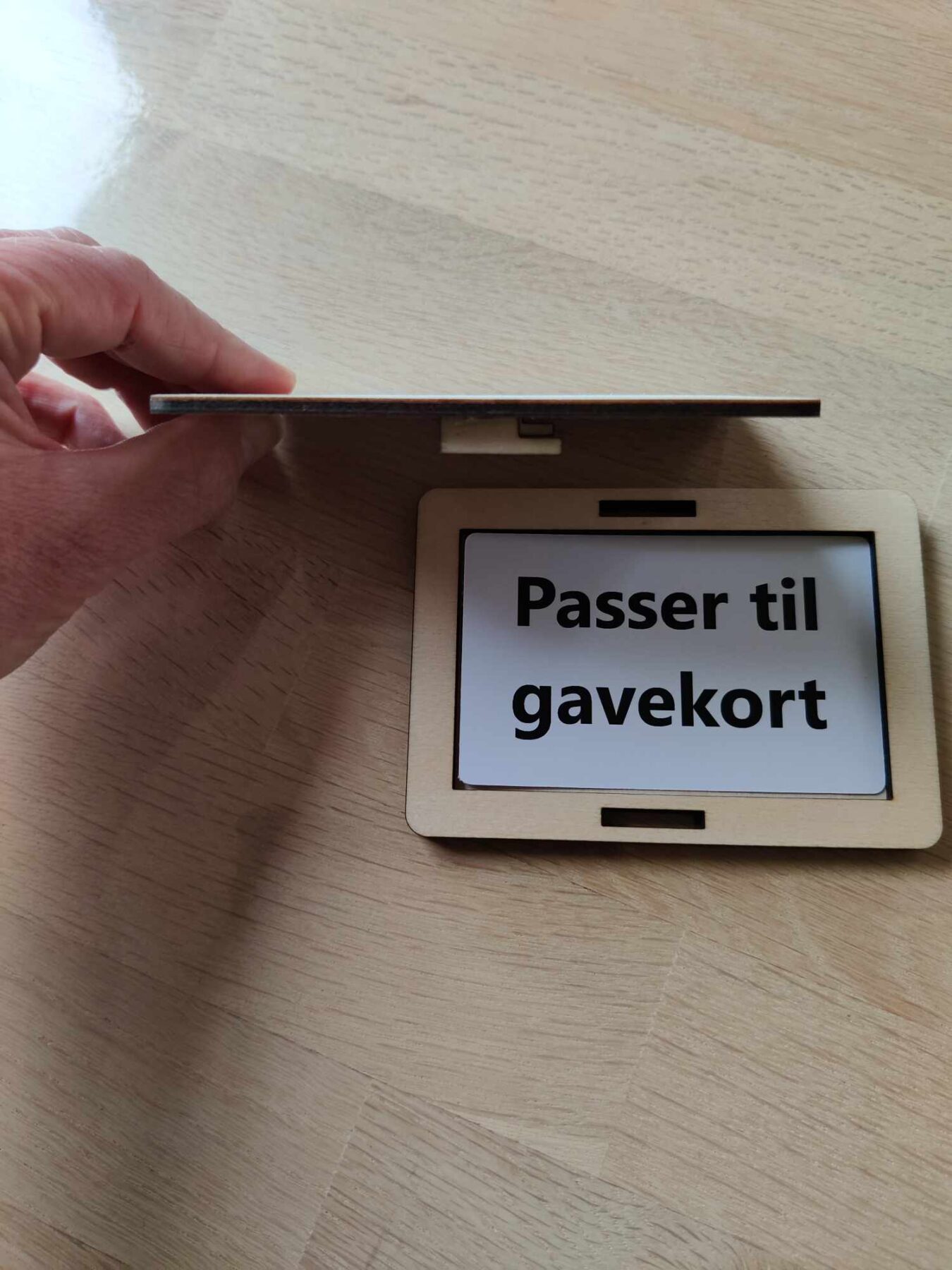 Åben æskens “slide away” låg og læg gavekortet i. Læg låget tilbage og luk æsken med et snuptag.