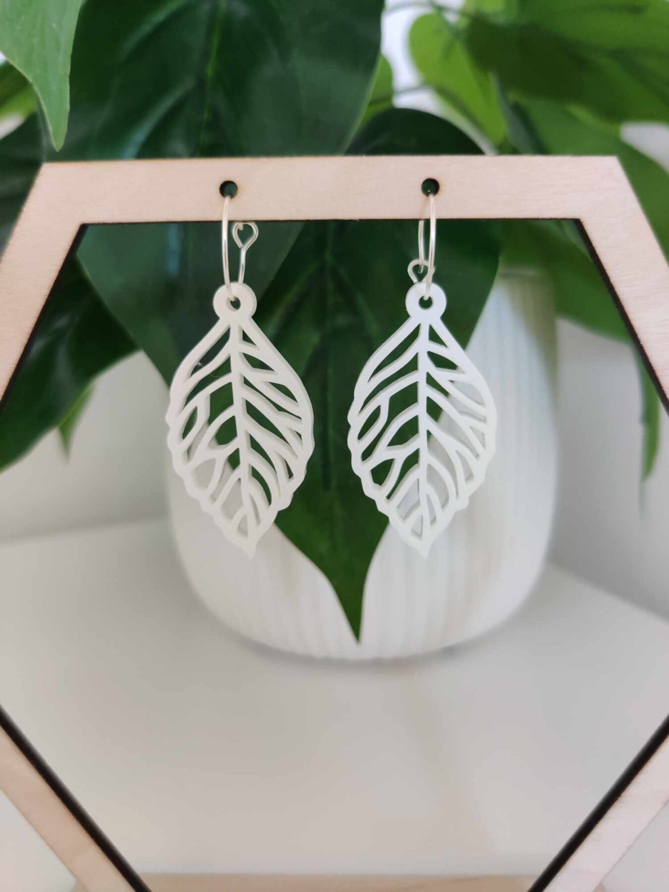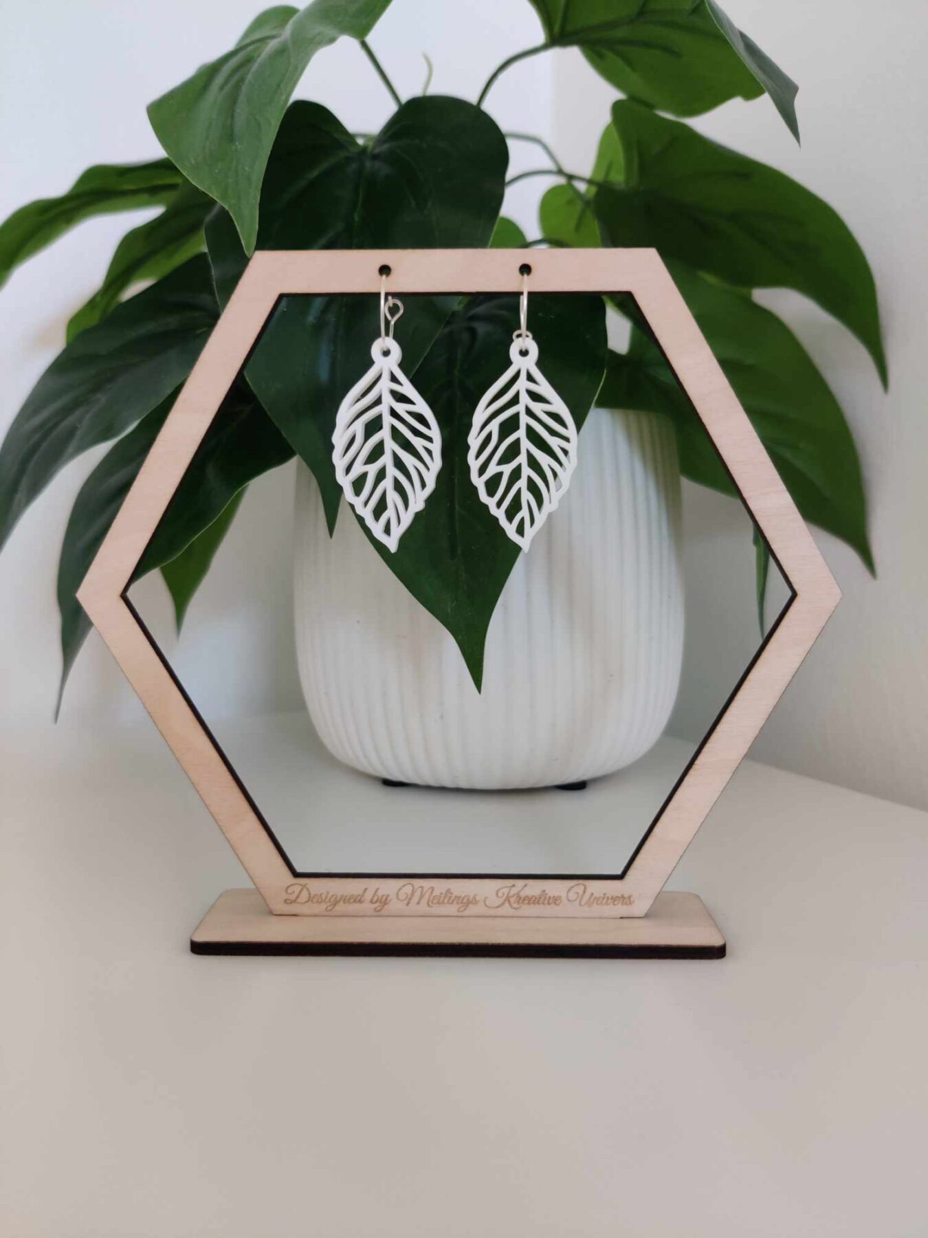 Disse unikke øreringe er lavet i hvid akryl, og passer derfor til alle typer af outfit og kan bruges til hverdag, såvel som til festlige lejligheder.