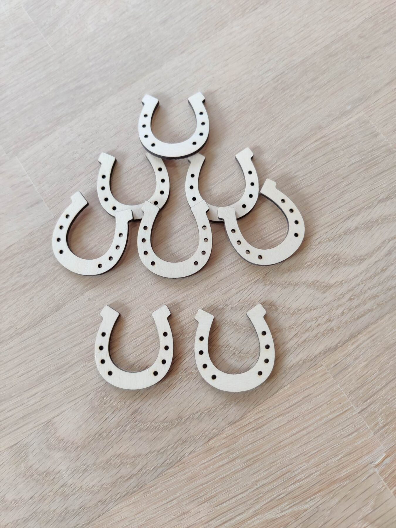Flotte konfetti hestesko i træ.