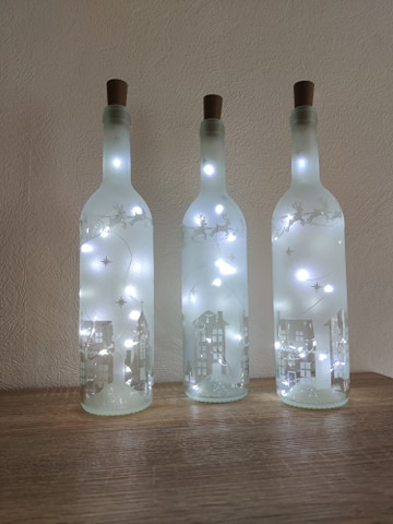Lys flaske med julemotiver