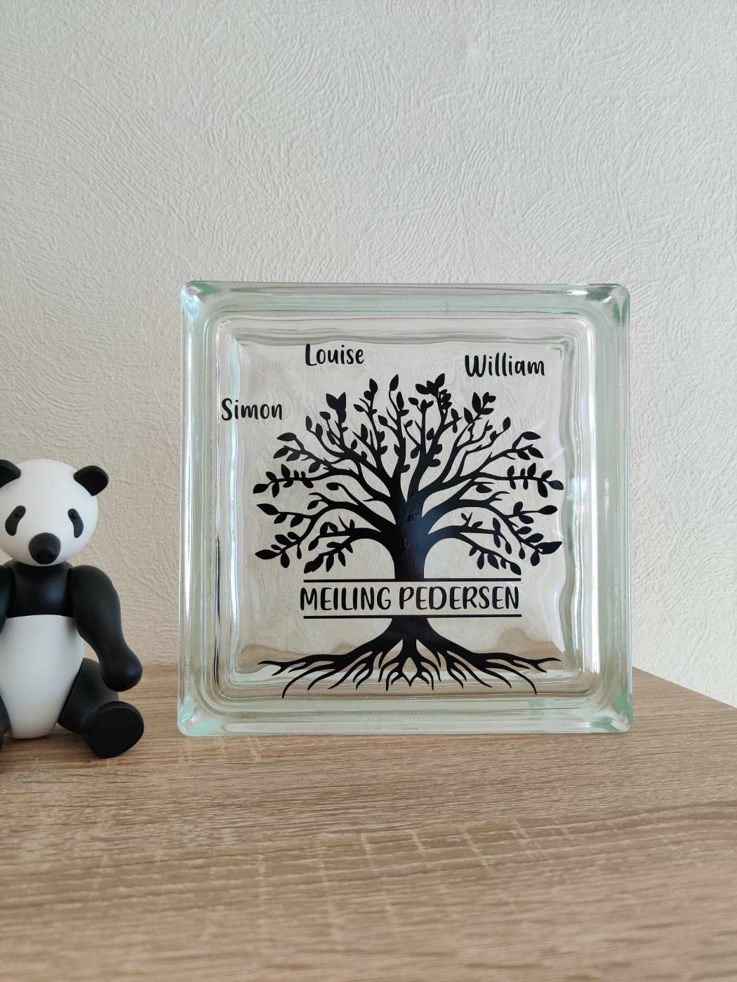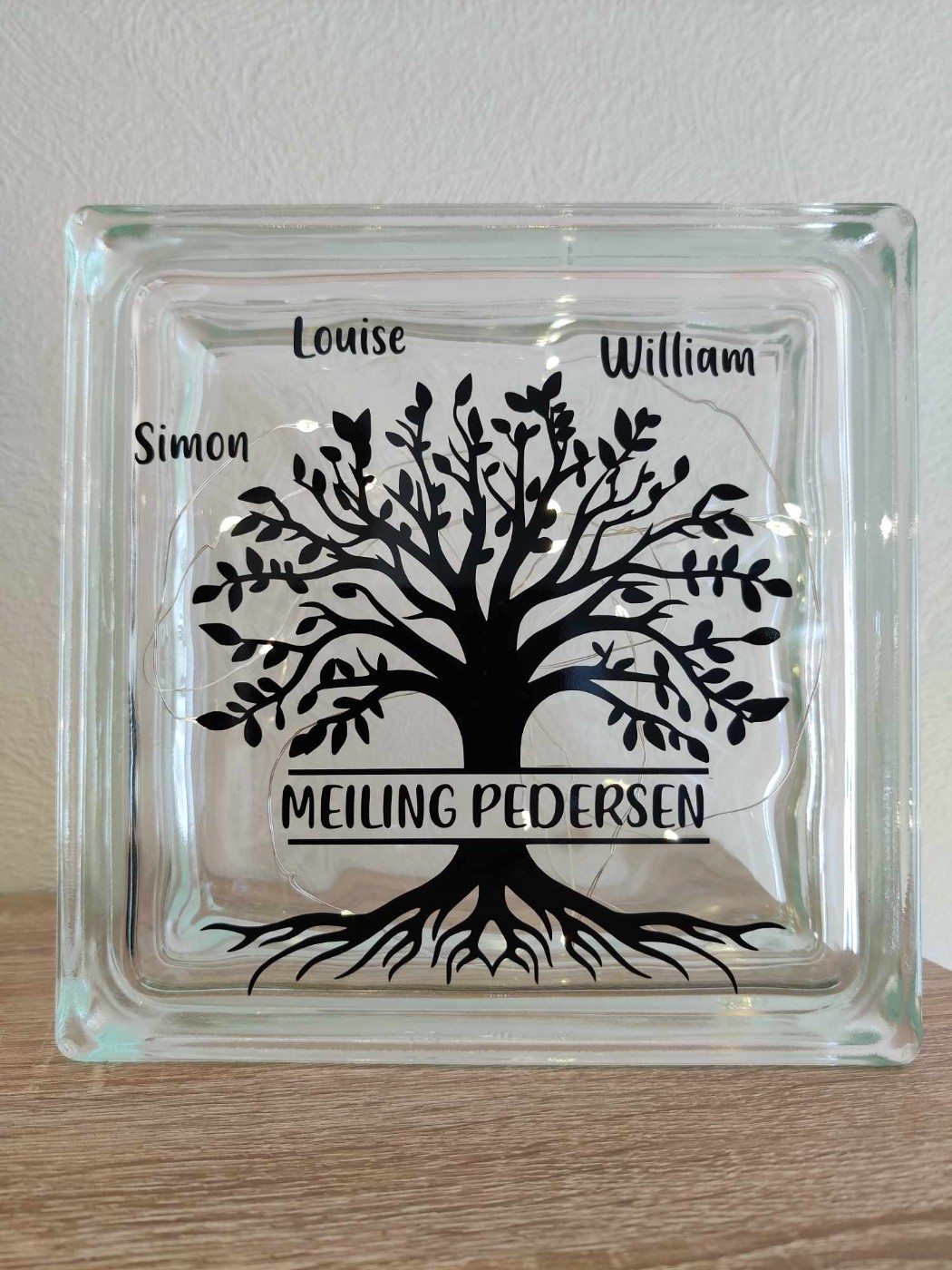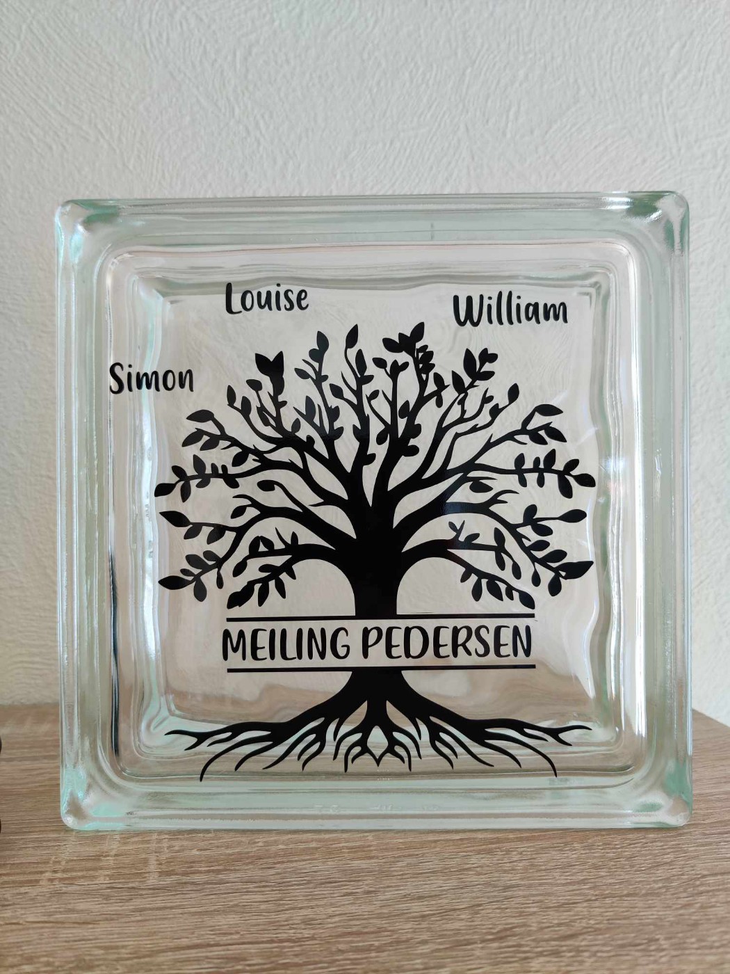 Enkel og elegant lyssten i glas med motiv af Livets træ.