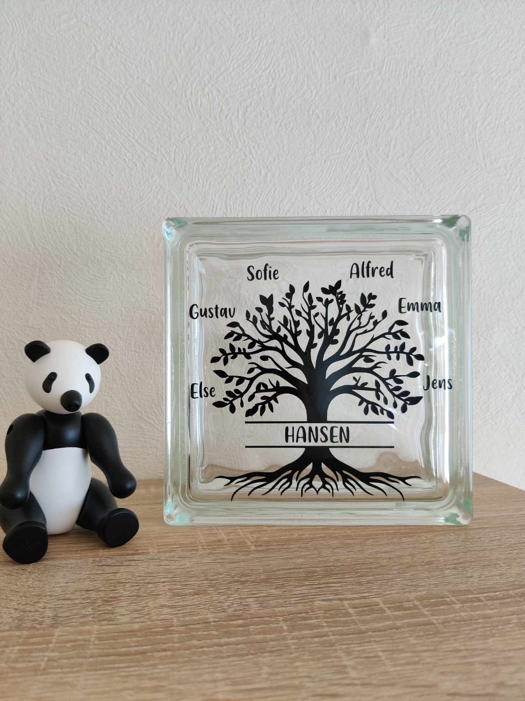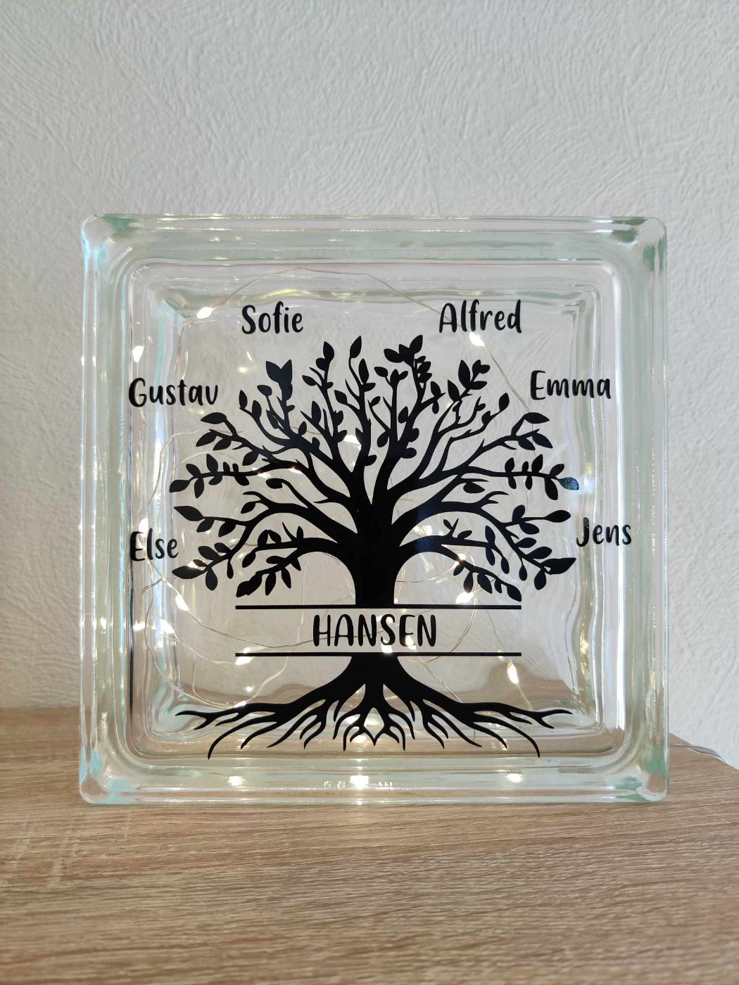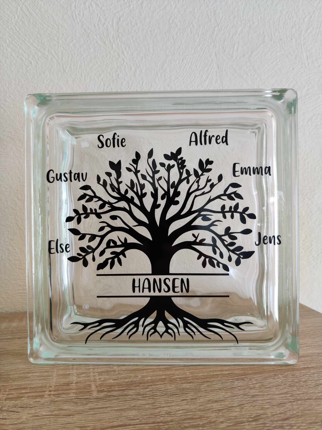 Enkel og elegant lyssten i glas med motiv af Livets træ.