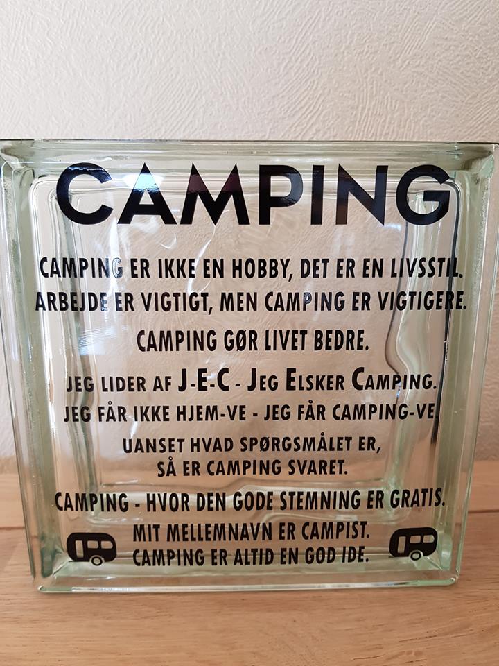 Enkel og elegant lyssten i glas med camping citat. Denne lyssten skaber en hyggelig belysning og er perfekt til de tusmørke timer i campingvognen.