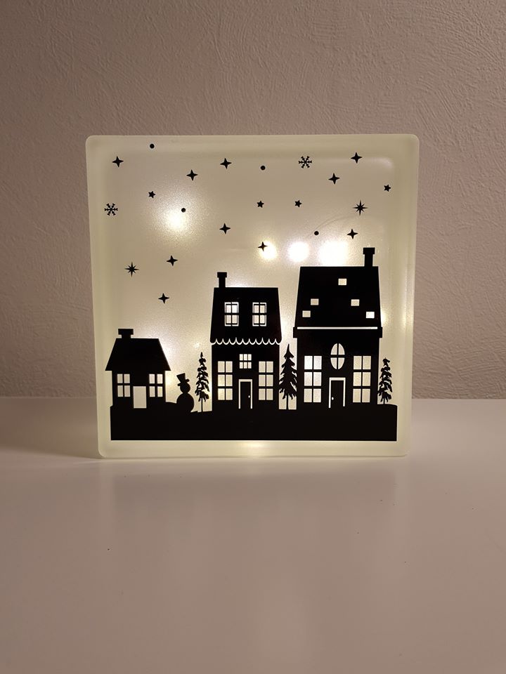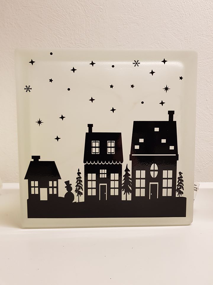Enkel og elegant lyssten i glas med julemotiv. Denne lyssten har et frostet look, som skaber en hyggelig belysning og er perfekt til de mange hyggelige timer i julemåneden.