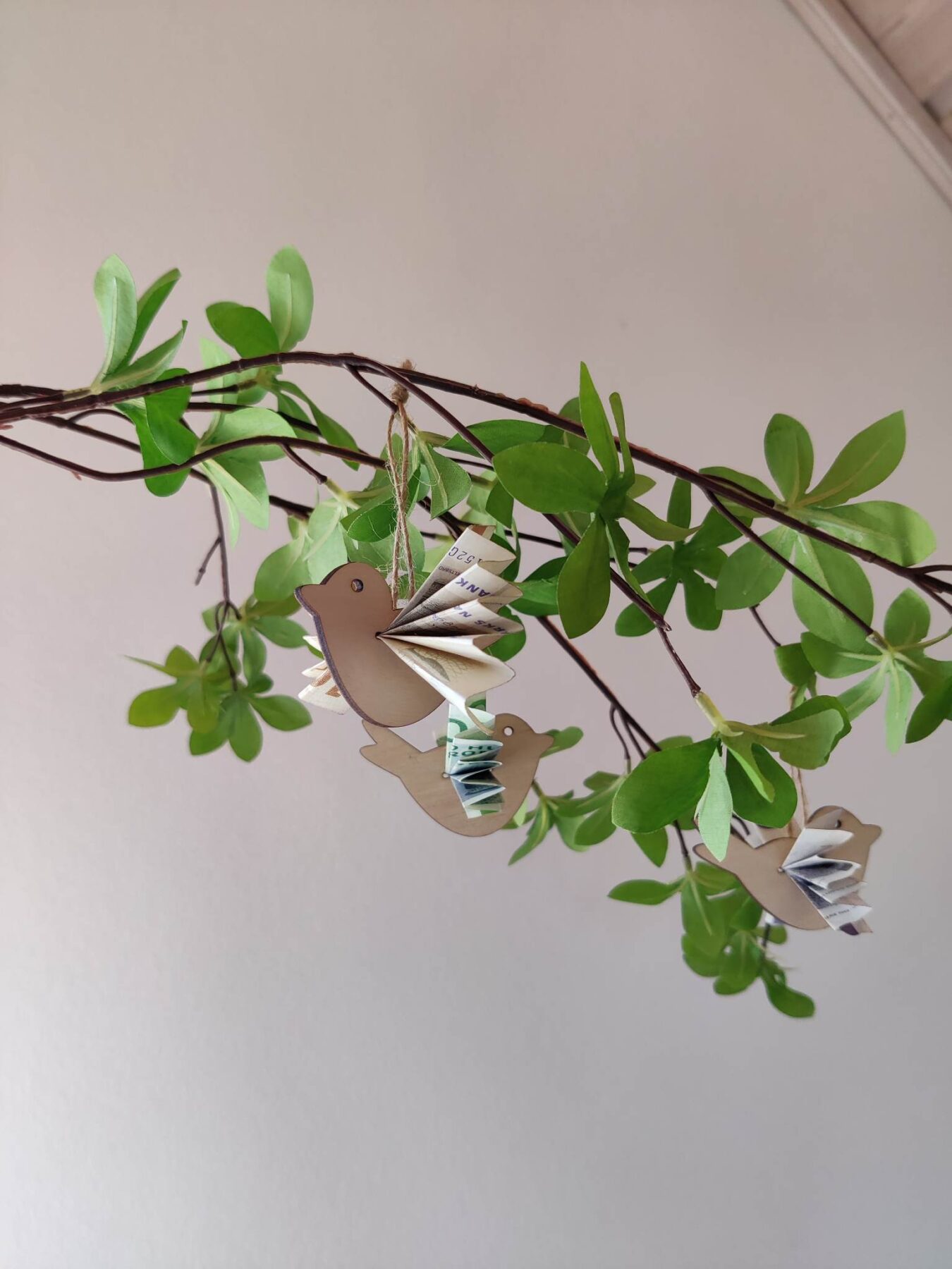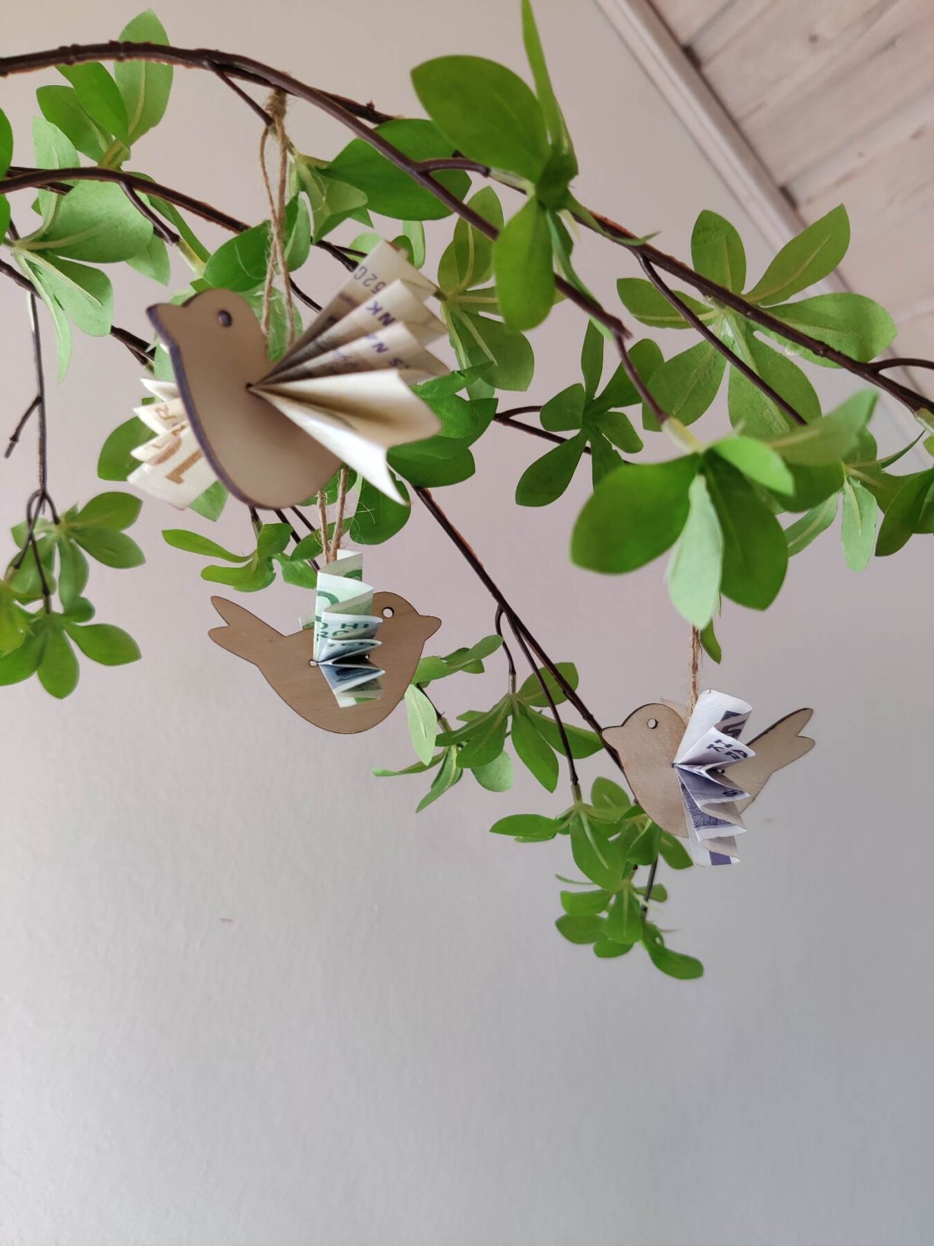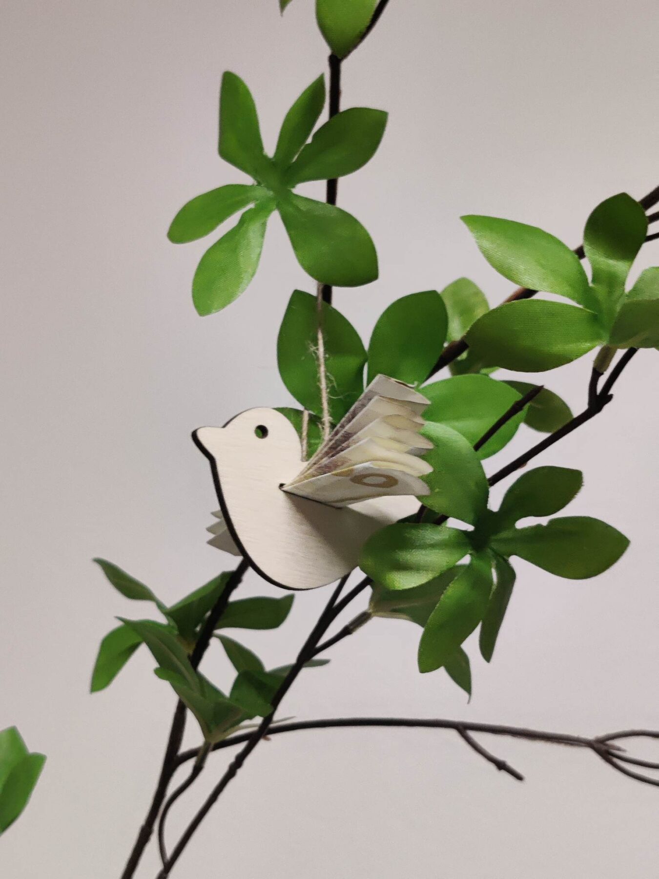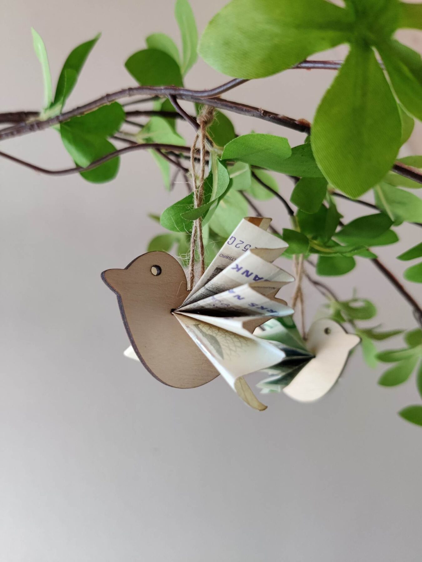 Små fine fugle er perfekt til dekoration hvis du skal give en pengegave.