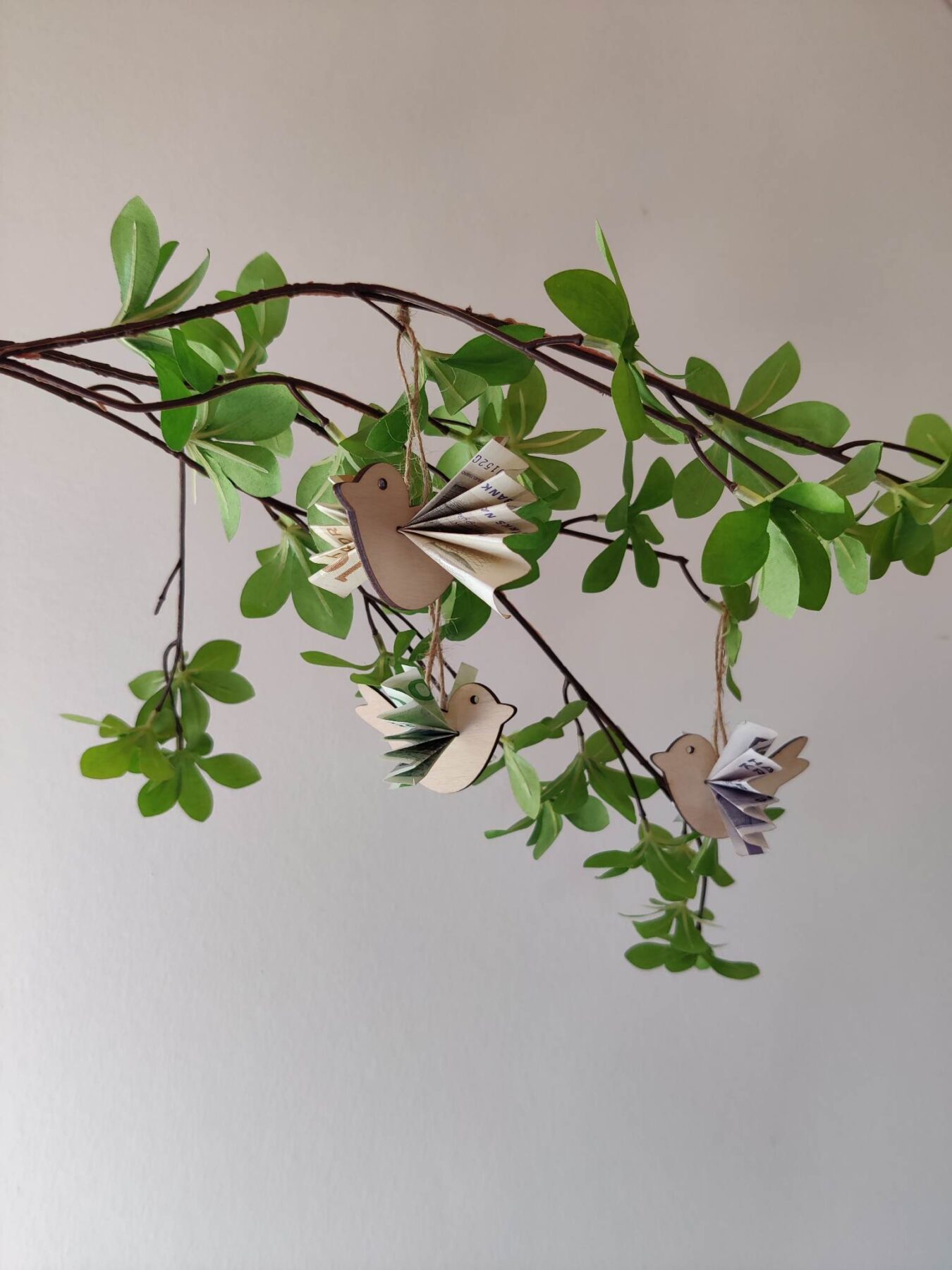 Fuglene kan herefter hænges på grene, eller blomster inden gaven gives til modtageren.