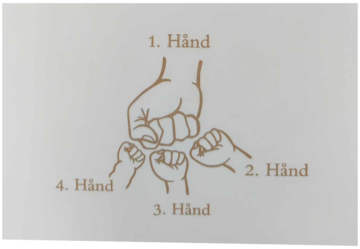 Bemærk venligst hvordan hænderne er nummereret på billedet, da det er afgørende for navnenes placering!