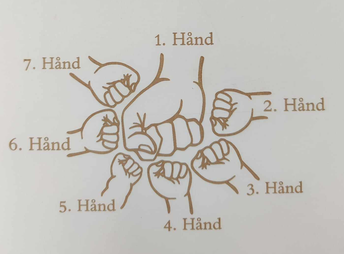 Bemærk venligst hvordan hænderne er nummereret på billedet, da det er afgørende for navnenes placering!